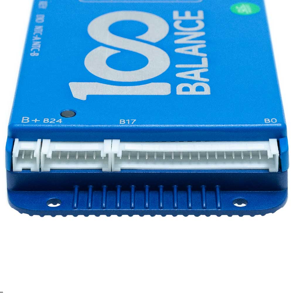 BMS 100Balance to nowoczesny moduł zabezpieczający, który łączy w sobie funkcje ochrony akumulatora i zaawansowanego, aktywnego balansowania cel. Chroni pakiet przed zwarciem, przeładowaniem i nadmiernym rozładowaniem, a wbudowany balanser wysokoprądowy dba o idealne wyrównanie napięć między ogniwami – niezależnie od tego, czy pracujesz na Li-Ion, LiFePO₄, czy LTO.