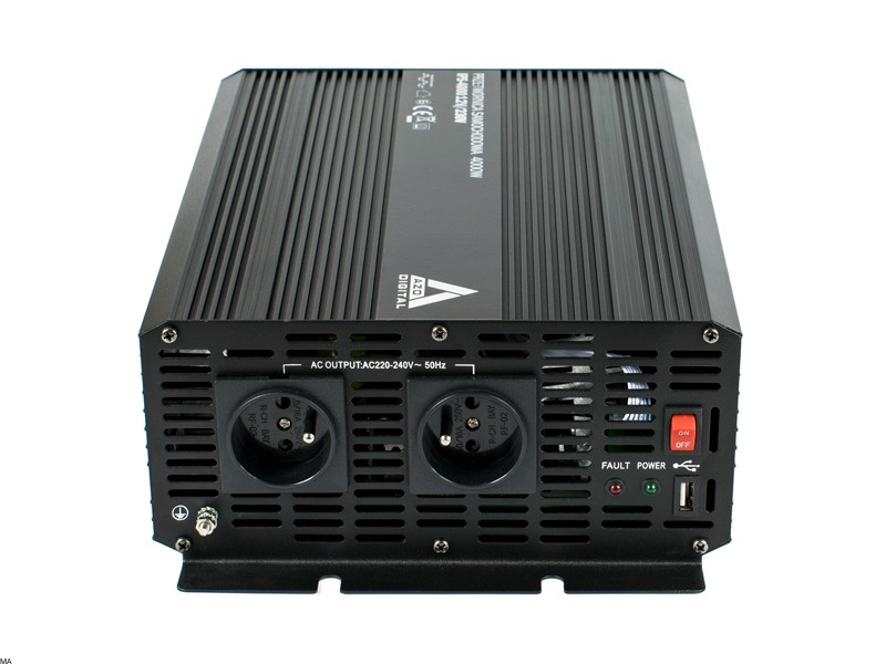 Samochodowa przetwornica napięcia dużej mocy serii IPS to idealne urządzenie do przetwarzania napięcia stałego DC 12V z akumulatorów lub instalacji samochodowych na napięcie przemienne AC 230V. Z powodzeniem zasili urządzenia elektryczne dużej mocy przystosowane do pracy z napięcia przemiennego 230V. Przetwornica wyposażona jest w komplet kabli zasilających, 2 gniazda 230VAC oraz gniazdo USB.