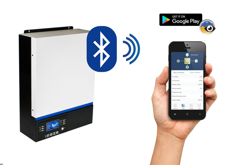 Nowością w inwerterach serii ESB jest również możliwość sterowania inwerterem za pomocą Smartfona i aplikacji mobilnej zastępującej panel sterowania.