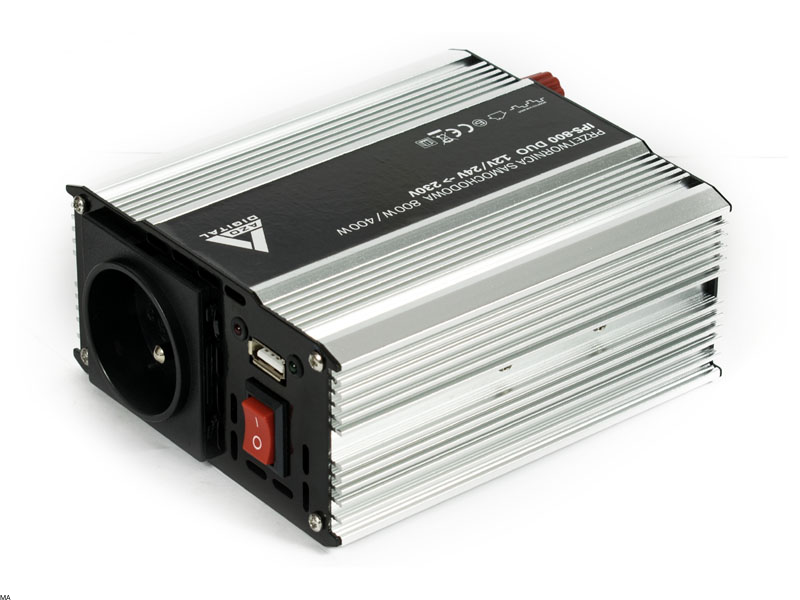 Samochodowa przetwornica napięcia serii IPS to idealne urządzenie do przetwarzania napięcia stałego DC 12V lub 24V z akumulatorów lub instalacji samochodowych na napięcie przemienne AC 230V. Z powodzeniem zasili urządzenia elektryczne małej mocy przystosowane do pracy z napięcia przemiennego 230V. Przetwornica wyposażona jest w komplet kabli zasilających zakończonych wtykiem do gniazda zapalniczki samochodowej i zestaw z końcówkami typu "krokodylek" do akumulatora oraz gniazdo USB.