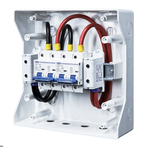 Rozdzielnica DC została specjalnie zaprojektowana do podłączania niskonapięciowych magazynów energii marki Kon-TEC. Wyposażona w dwa solidne wyłączniki nadprądowe TOB1Z-125 o parametrach 125A, 600V, charakterystyka C oraz 2 pola, zapewnia ochronę instalacji i bezpieczną eksploatację systemu. Dodatkowo w zestawie znajdziesz wszystkie potrzebne złącza, co pozwala na szybkie i łatwe wykonanie podłączenia magazynu energii. Jest to idealne rozwiązanie dla instalacji fotowoltaicznych oraz innych systemów magazynowania energii, stosowanych zarówno w budynkach mieszkalnych, jak i przemysłowych.