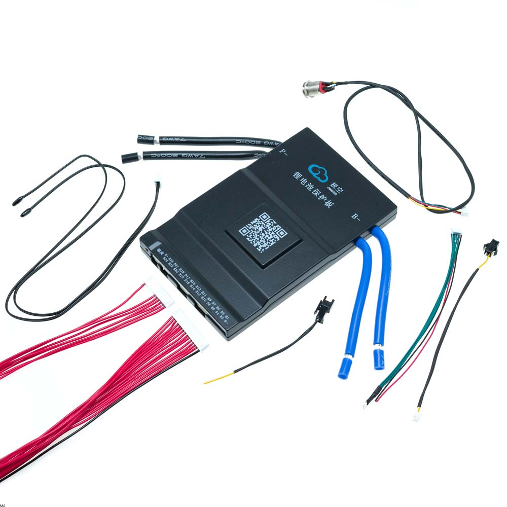 Dzięki pełnej konfiguracji w aplikacji mobilnej (Android/iOS), BMS JK współpracuje z różnymi typami ogniw – Li-Ion, LiFePO4 oraz LTO. Wymaga jedynie ustawienia liczby cel i rodzaju akumulatora. W zestawie znajduje się kabel do połączenia ogniw oraz wyłącznik aktywacyjny.